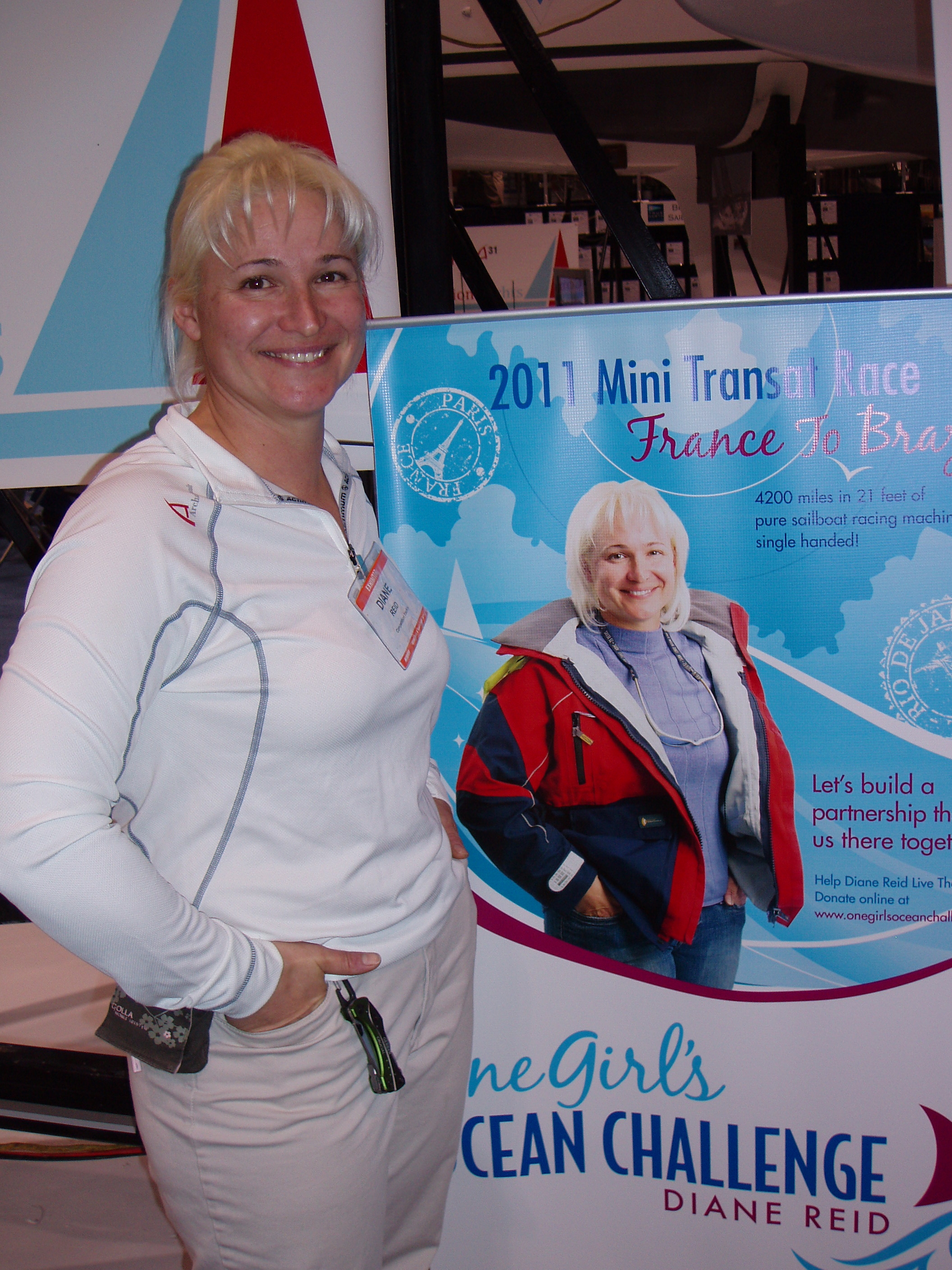 What a wonderful success the boat show was! We got to tell lots of people about the plans to do the 2011 Mini Transat Race, meet some potential corporate sponsors and put a few coins in the coffers along the way. It was also really exciting to hear people’s stories about their trips across the Atlantic and elsewhere around the world. Thank you also to everyone who made it possible. We had an army of volunteers who all pitched in and made everyone proud. Thanks also to the guys at Competition Yachts with the new Archambault boats. Without them we wouldn’t have had the space at the show to tell our story.